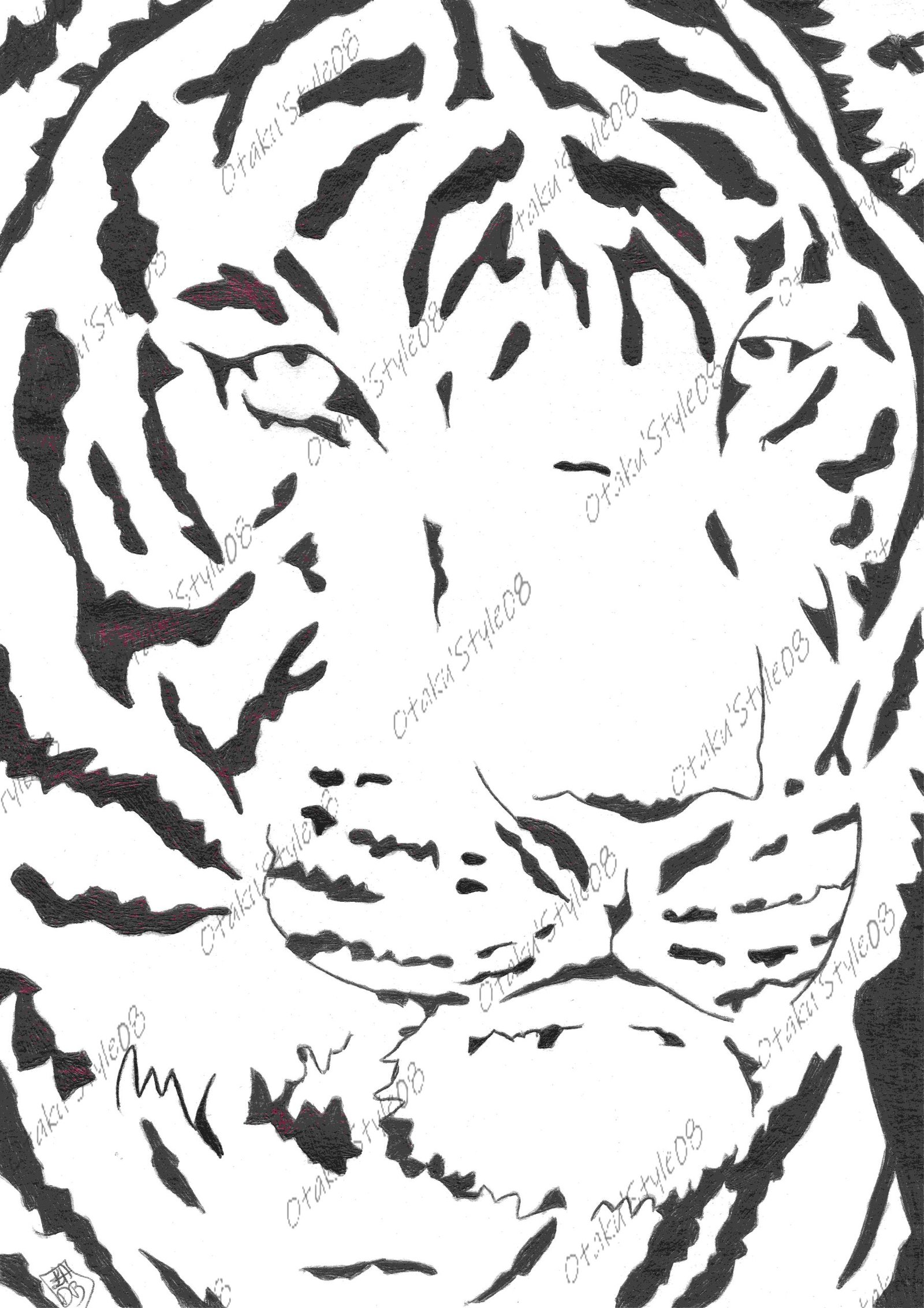 Dessin original de Tigre au format A4 (21×29.7cm), Choisissez entre la version originale ou en print A4/A3.